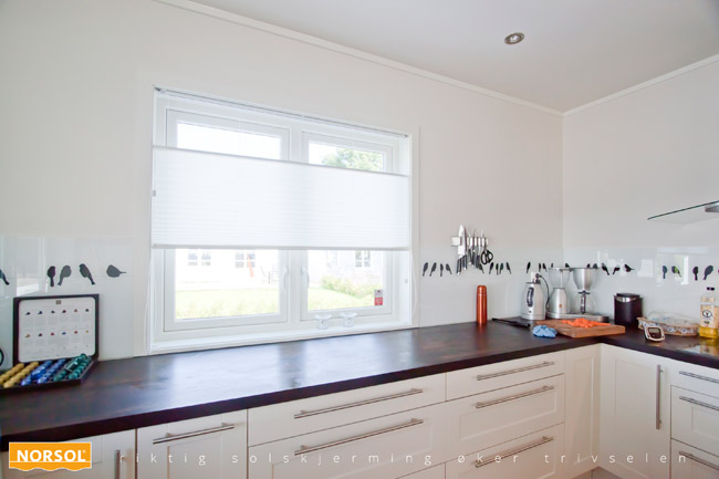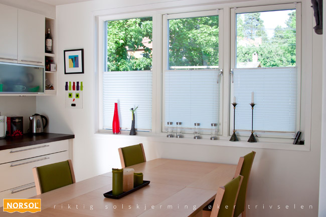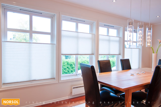Standard betjenes den som en persienne, men kan som tilvalg «sveve i luften» og plasseres nede i vinduet, på midten eller dekke hele flaten. Gi ditt interiør et ansiktsløft med Norsol Plisségardiner.